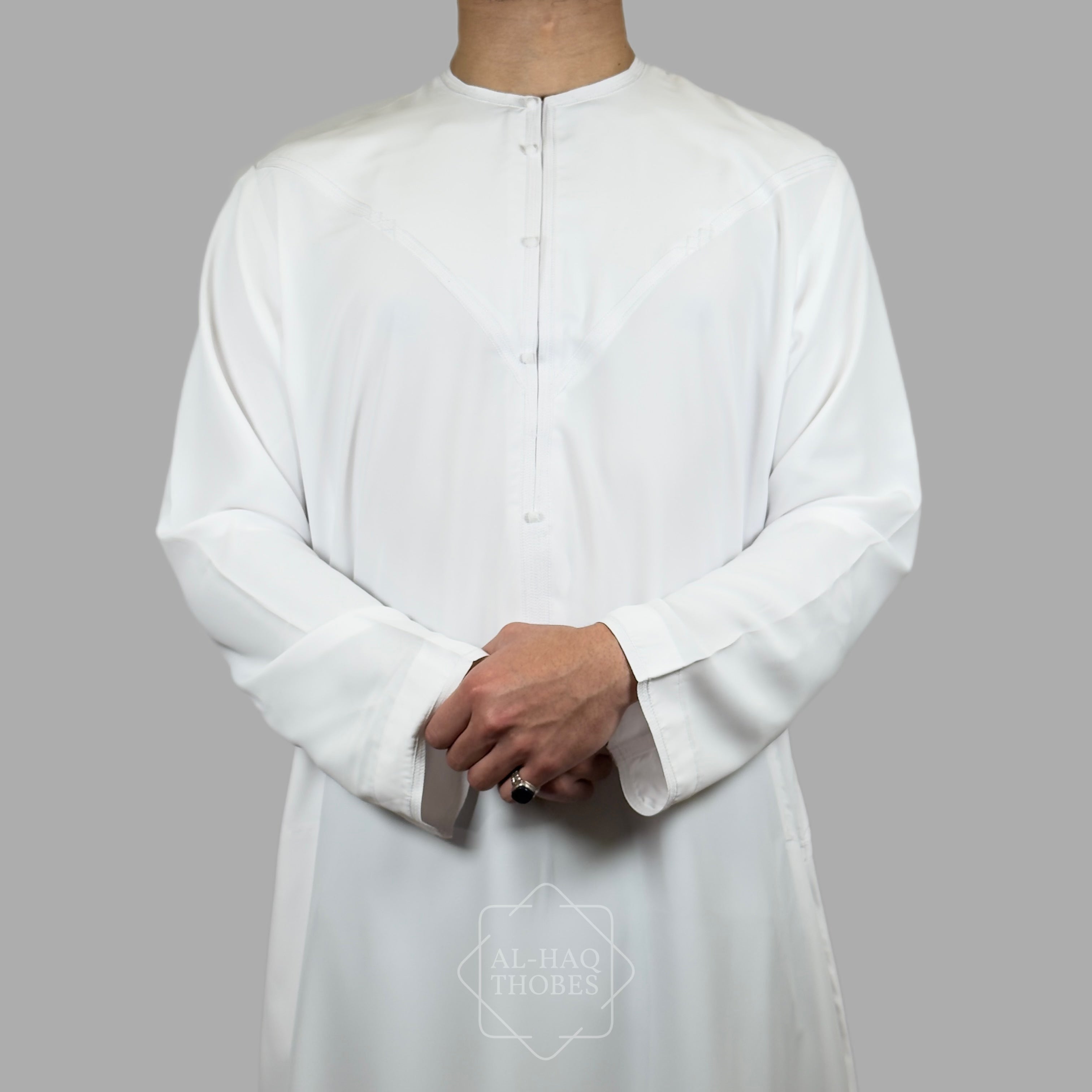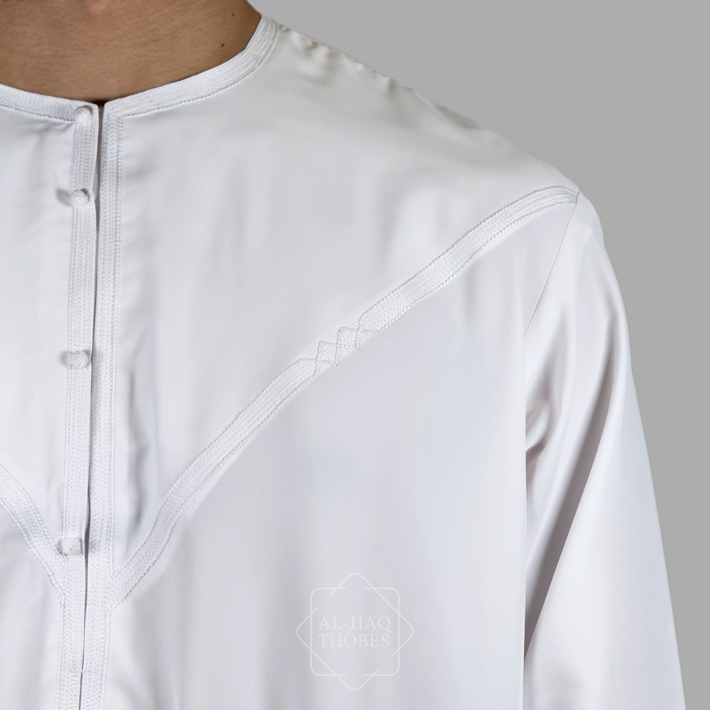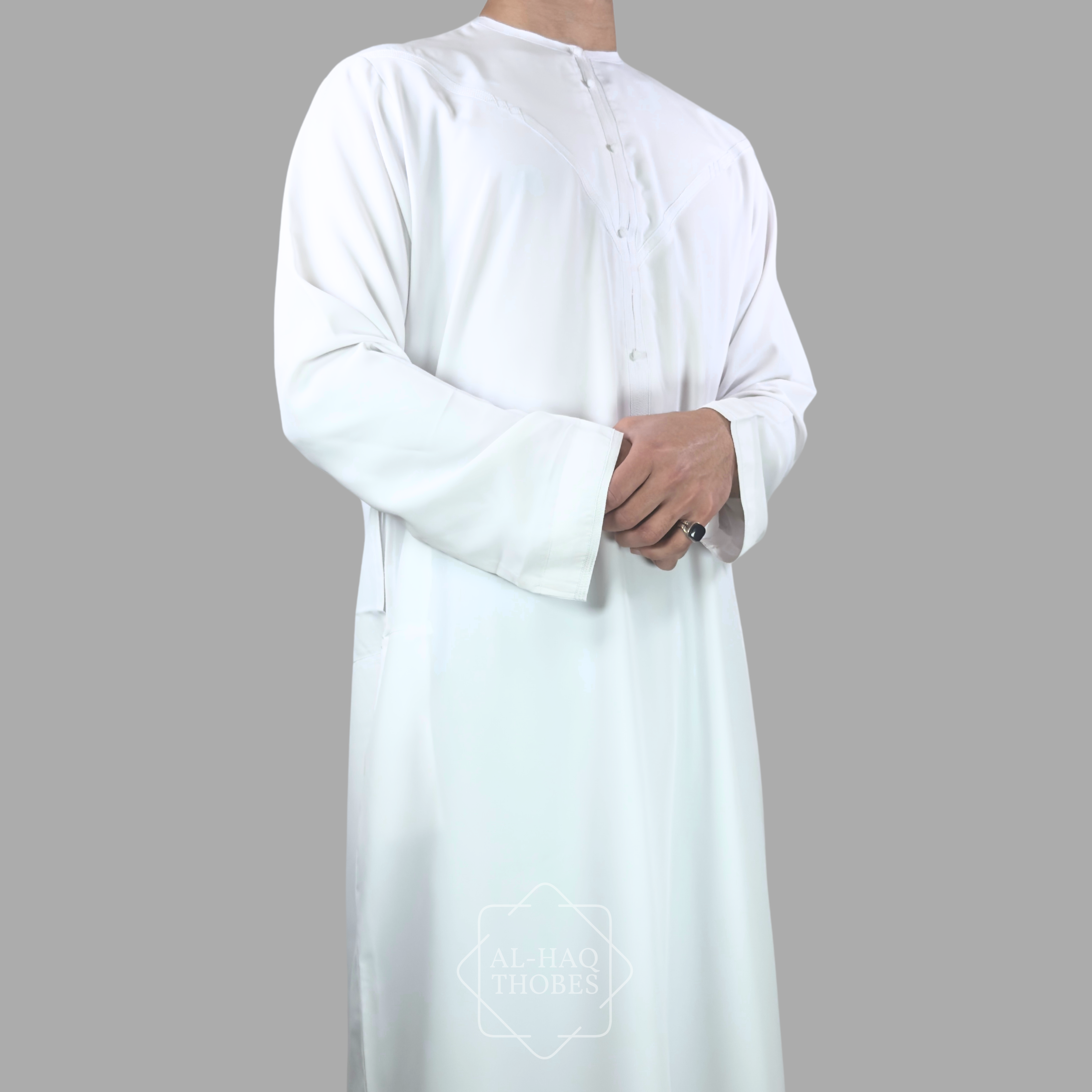 Zibda is a premium lightweight fabric renowned for its silky-smooth texture, breathability, and luxurious drape. It is exceptionally soft against the skin, providing a butter-like feel—hence the name "Zibda," which means "butter" in Arabic. This high-quality material ensures maximum comfort and airflow, making it perfect for warm climates while maintaining an elegant, structured look.