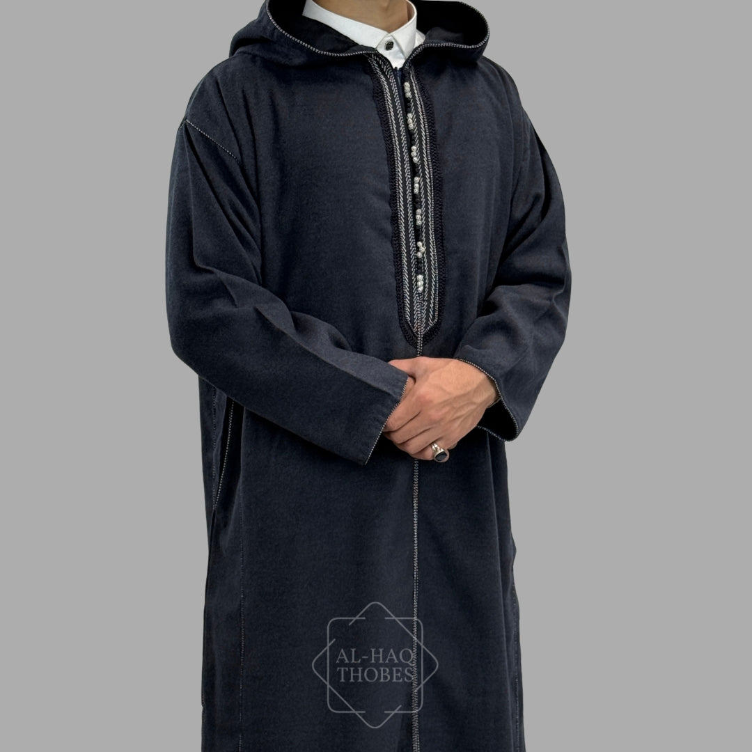 Premium Navy Blue Hooded Moroccan Thobe