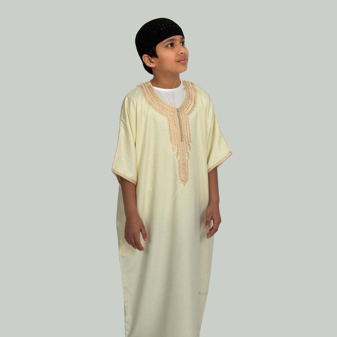 Boy's Luxury Ivory Cream Zipped Moroccan Gandoura