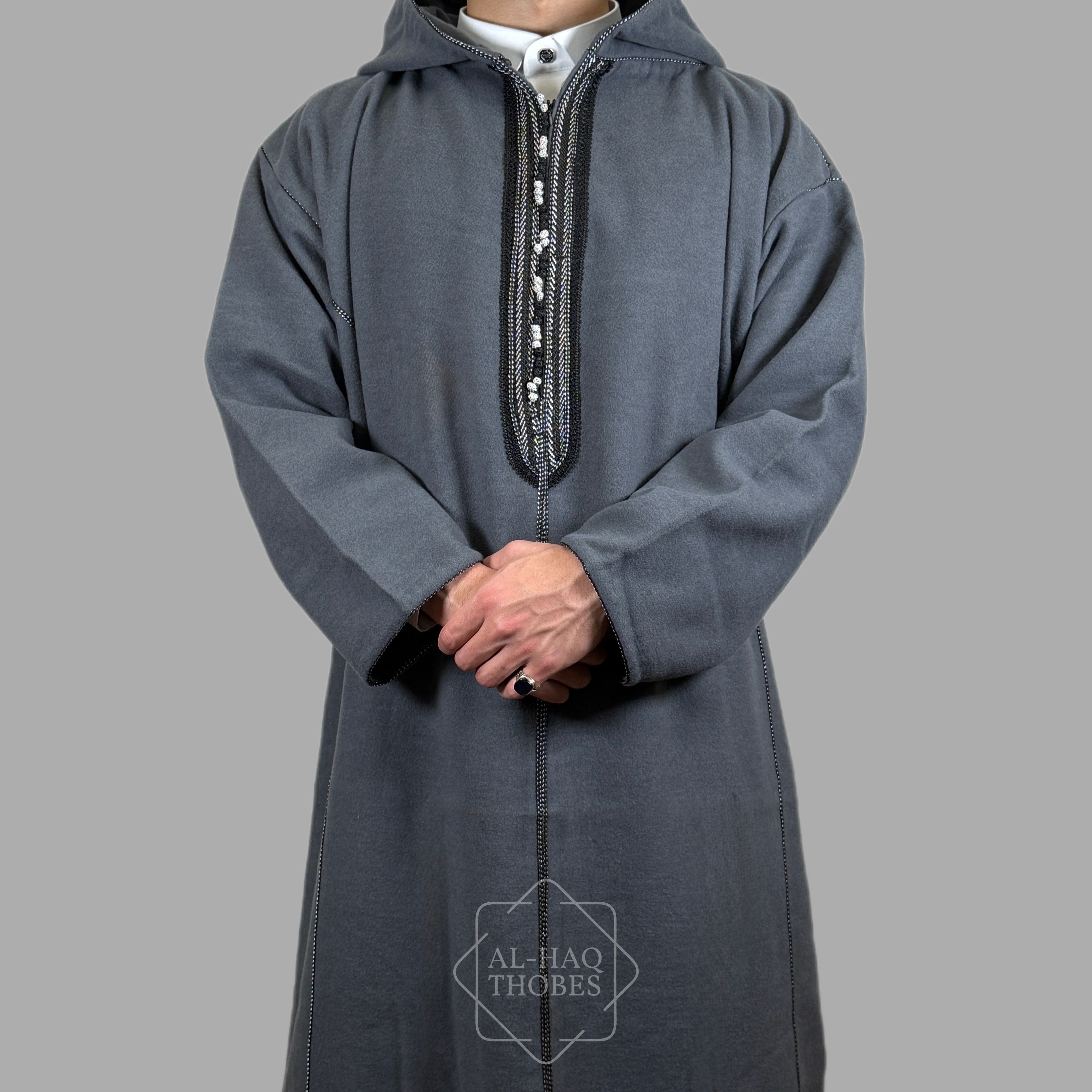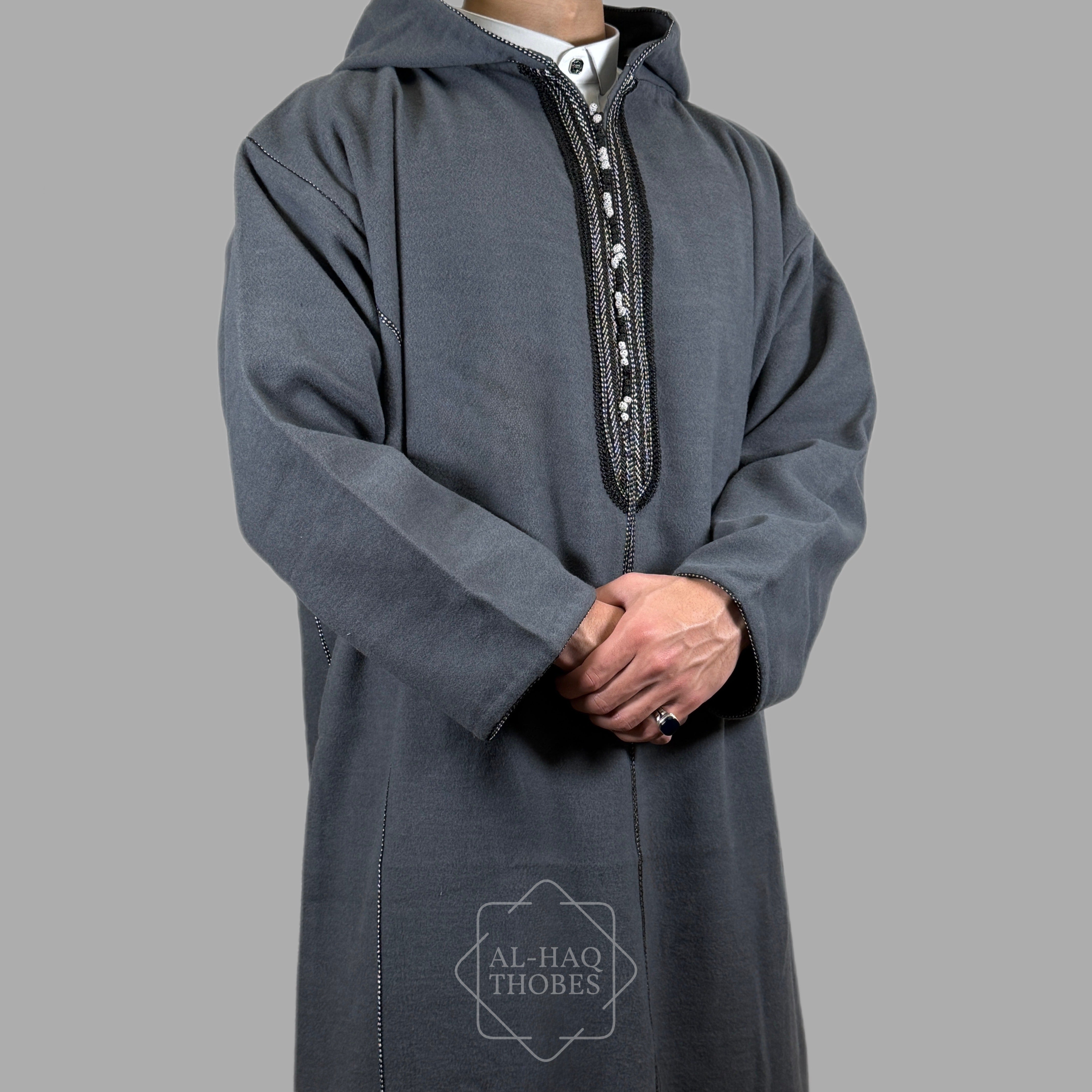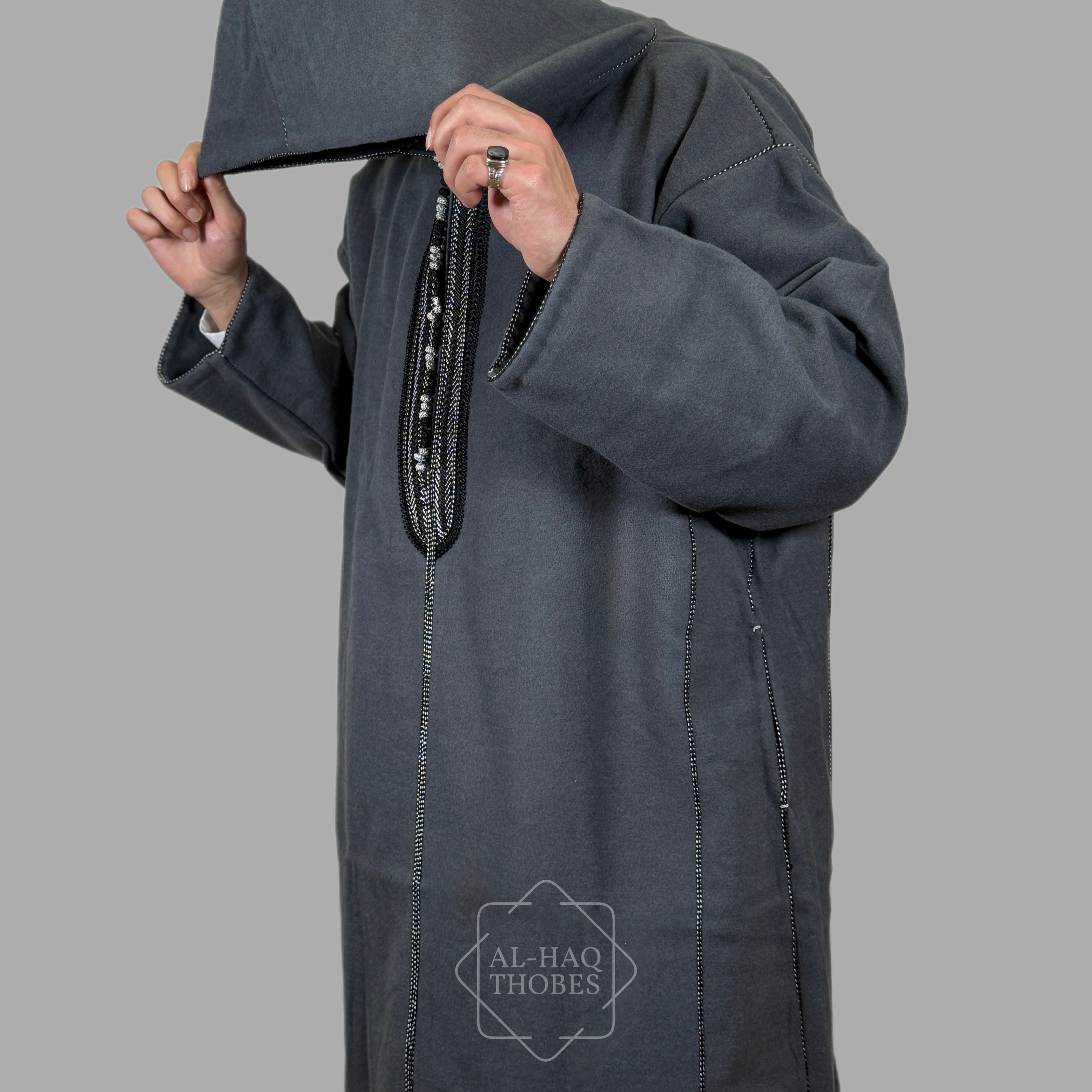 Luxury Brooklyn Grey Hooded Moroccan Thobe (Open/Slit Pockets)