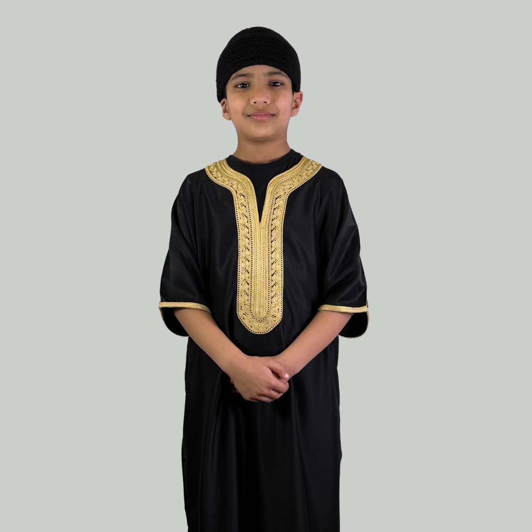 Boy's Luxury Black & Gold Moroccan Gandoura