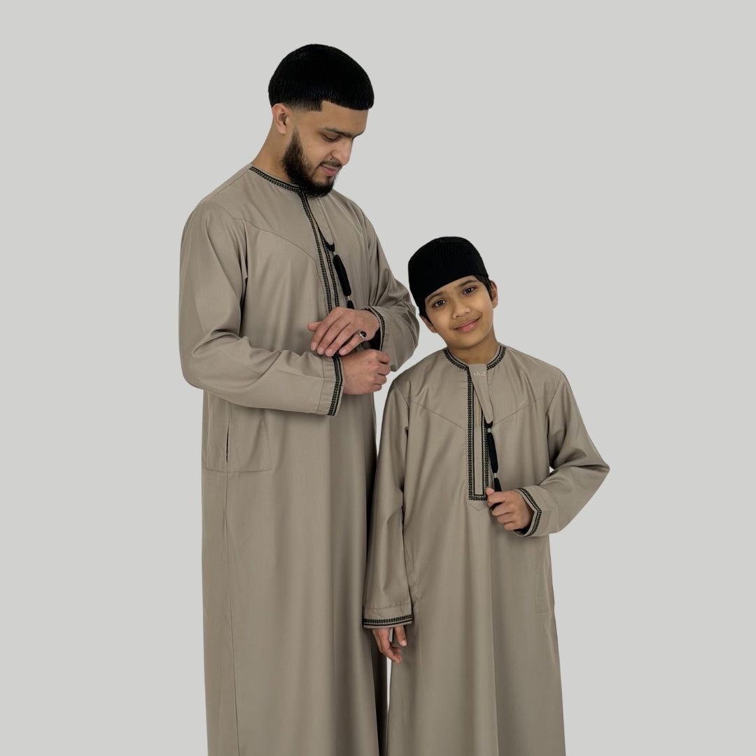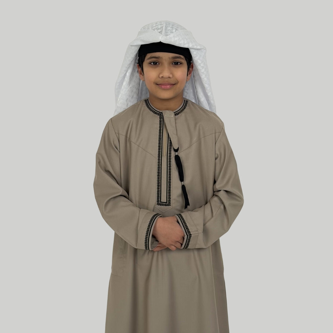 Boy's Luxury Stone Beige & Black Omani Thobe