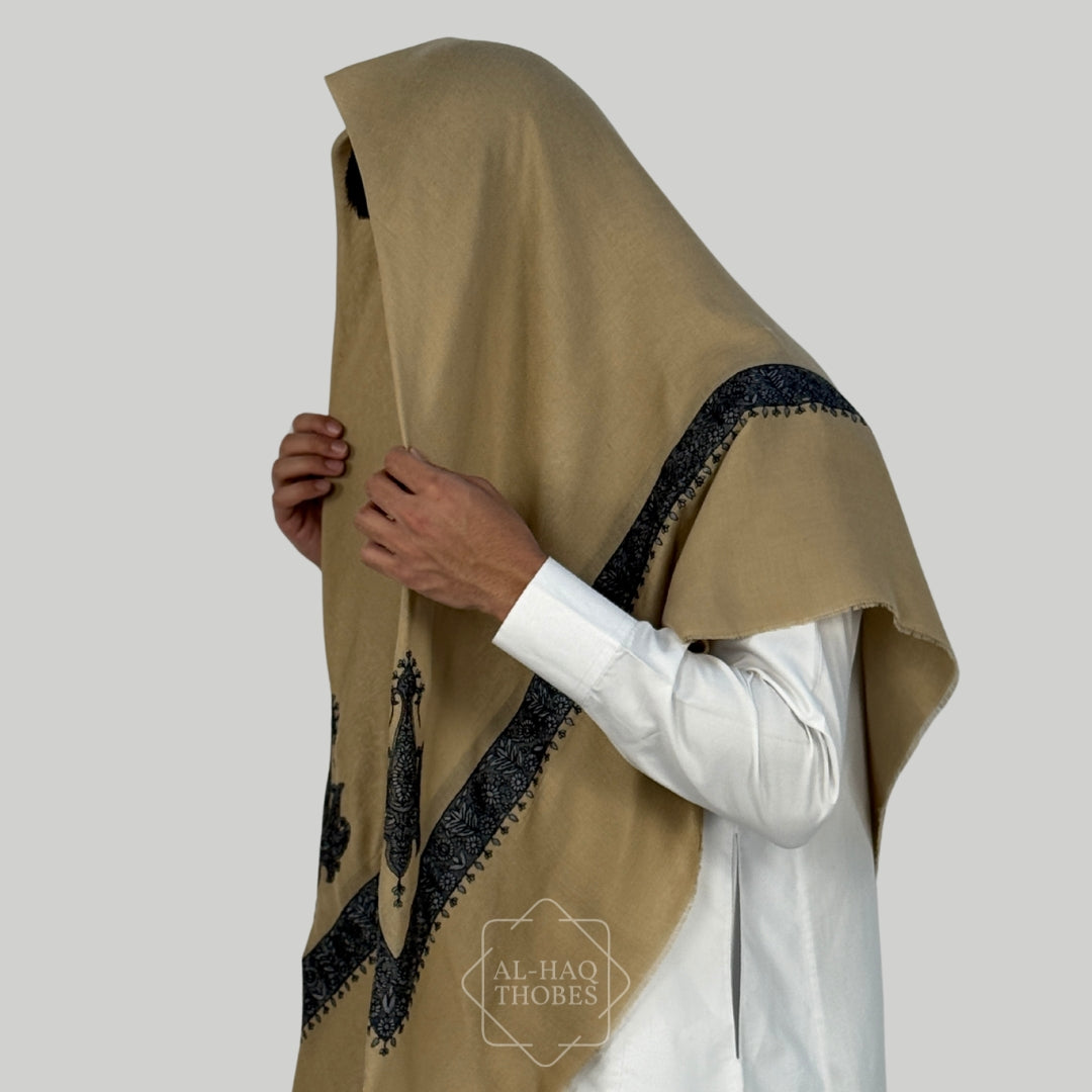 Luxury Camel Brown Embroidered Yemeni Shemagh