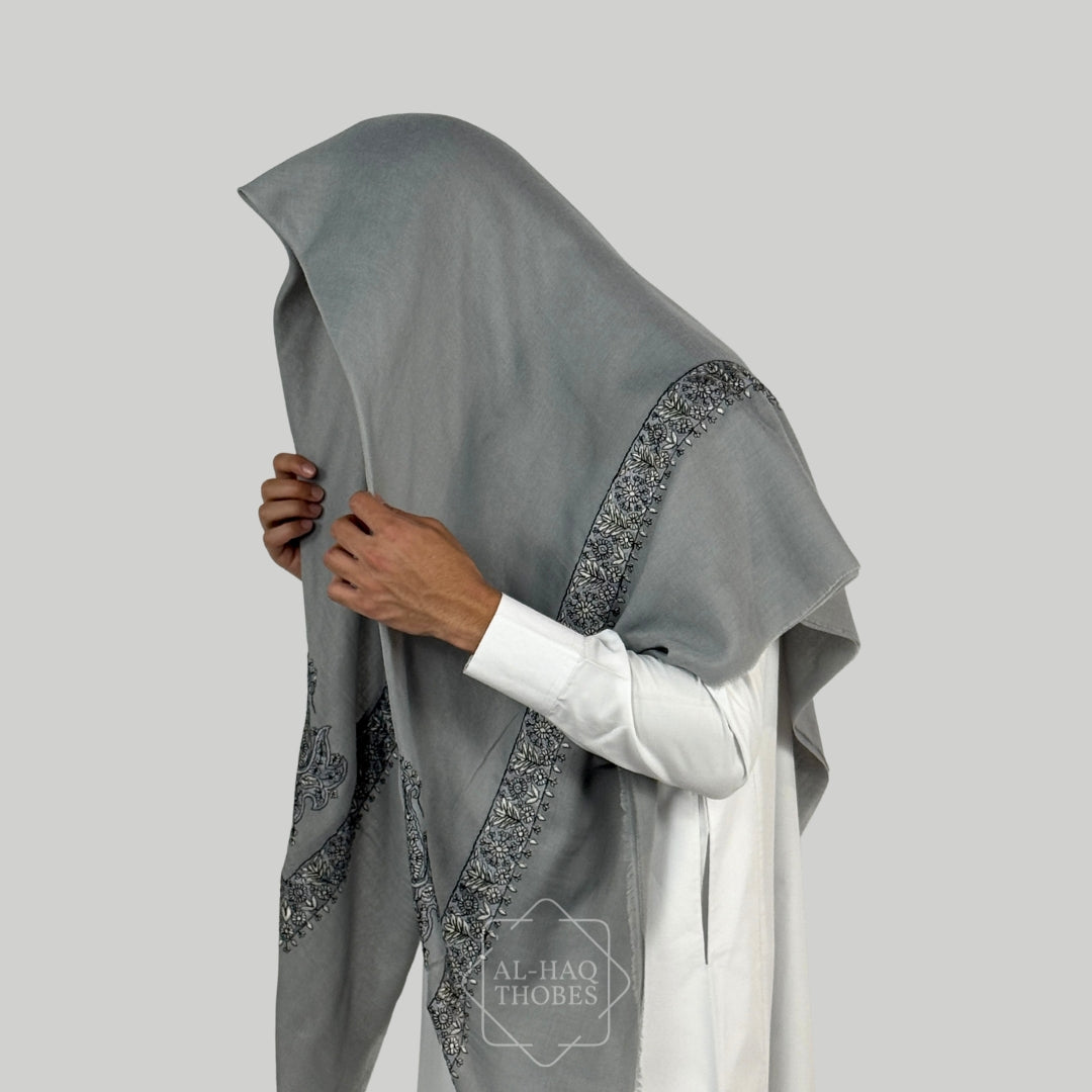 Luxury Dark Grey Embroidered Yemeni Shemagh
